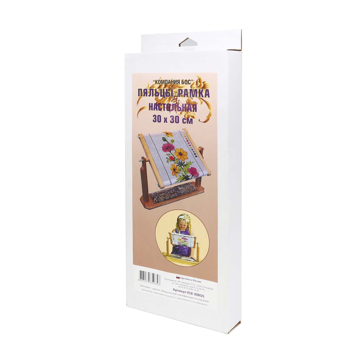 Настольный держатель пялец в комплектации с рамой 30х30 см обеспечивает комфортную работу вышивальщицы сидя на диване, в кресле или за столом.